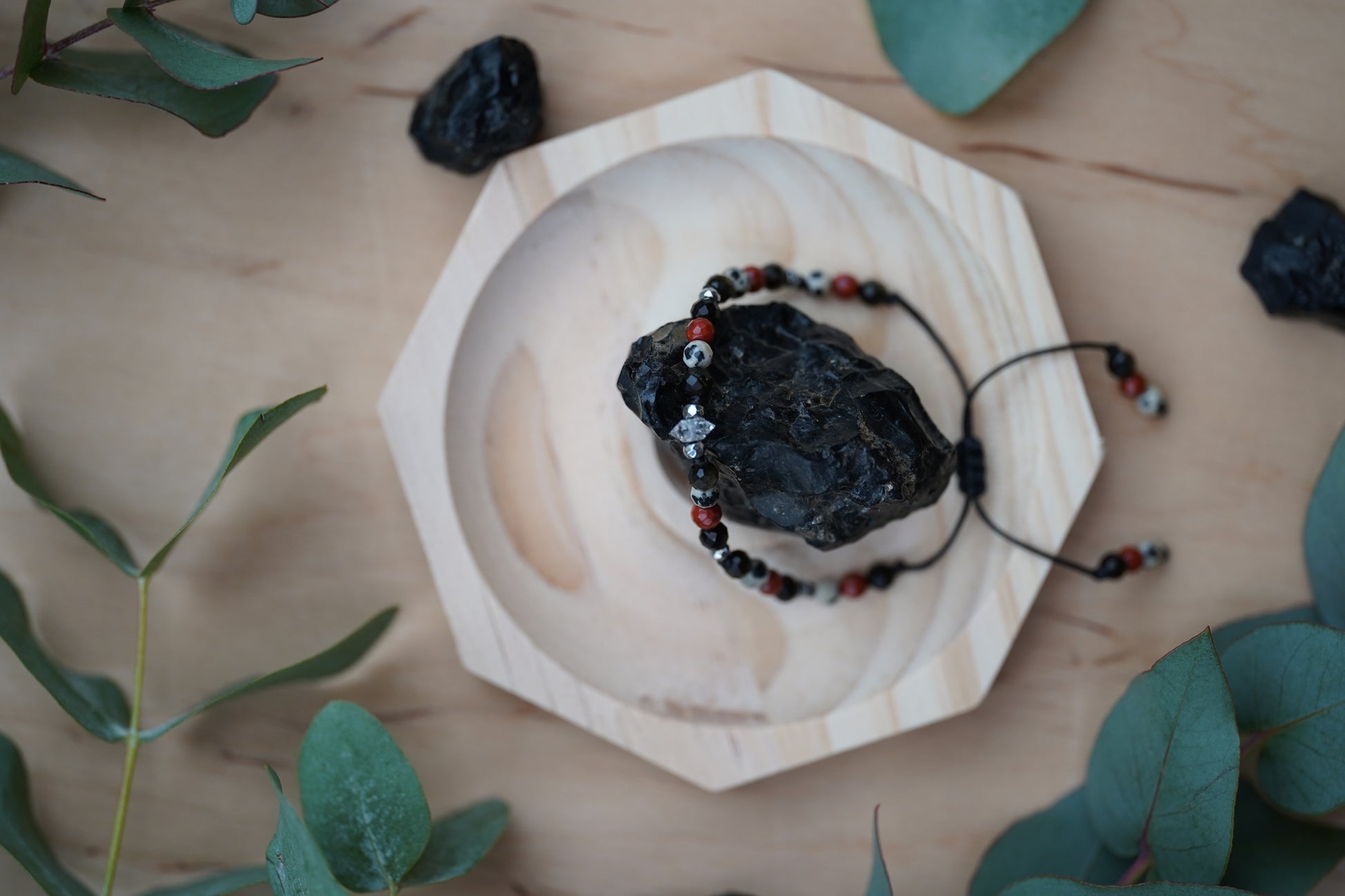 Obsydian pomaga w zwalczaniu lęków i niepewności, zachęcając do stawiania czoła wyzwaniom z odwagą i pewnością siebie.