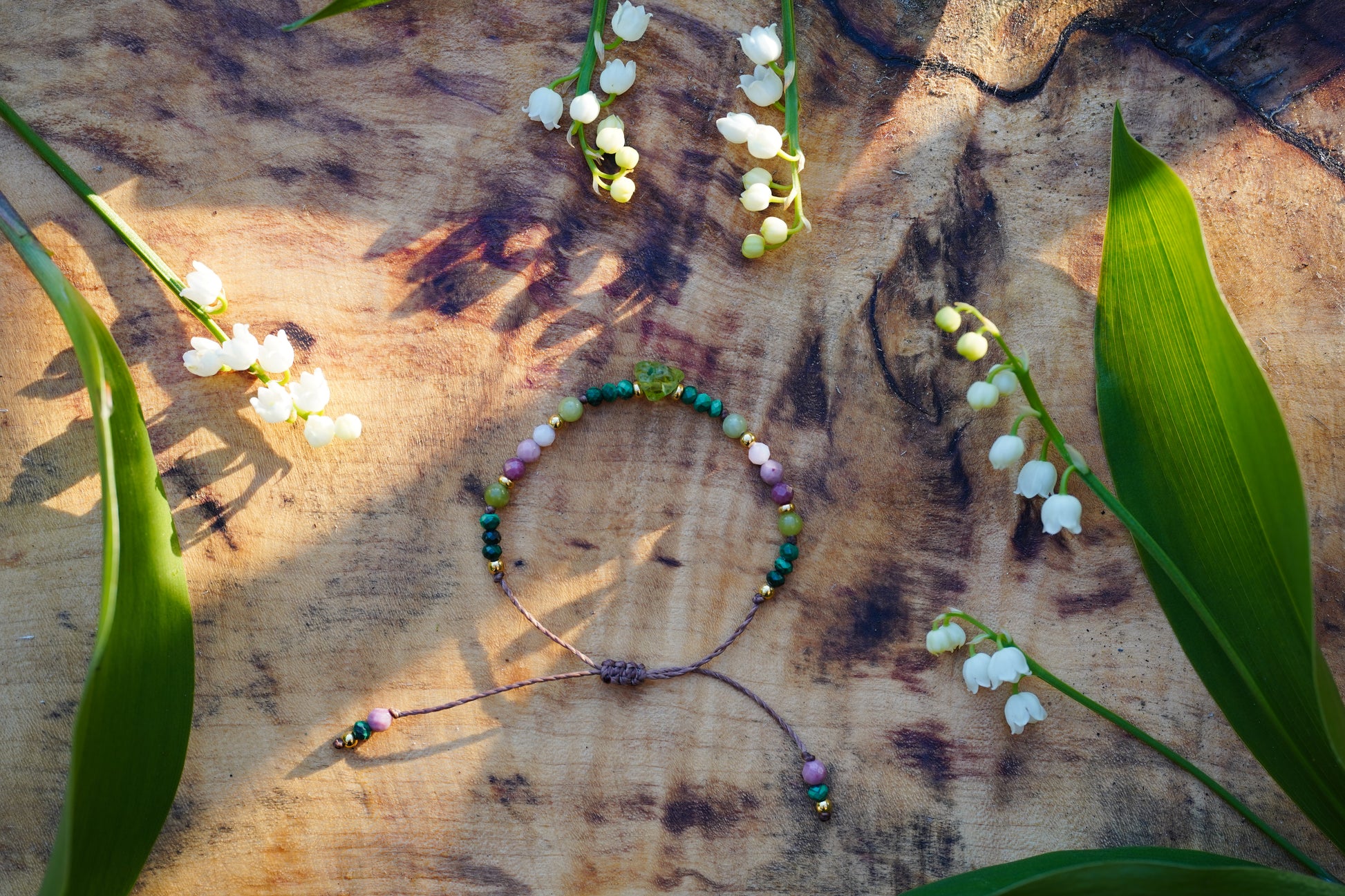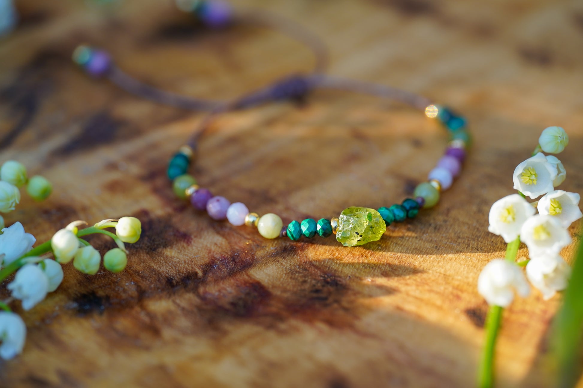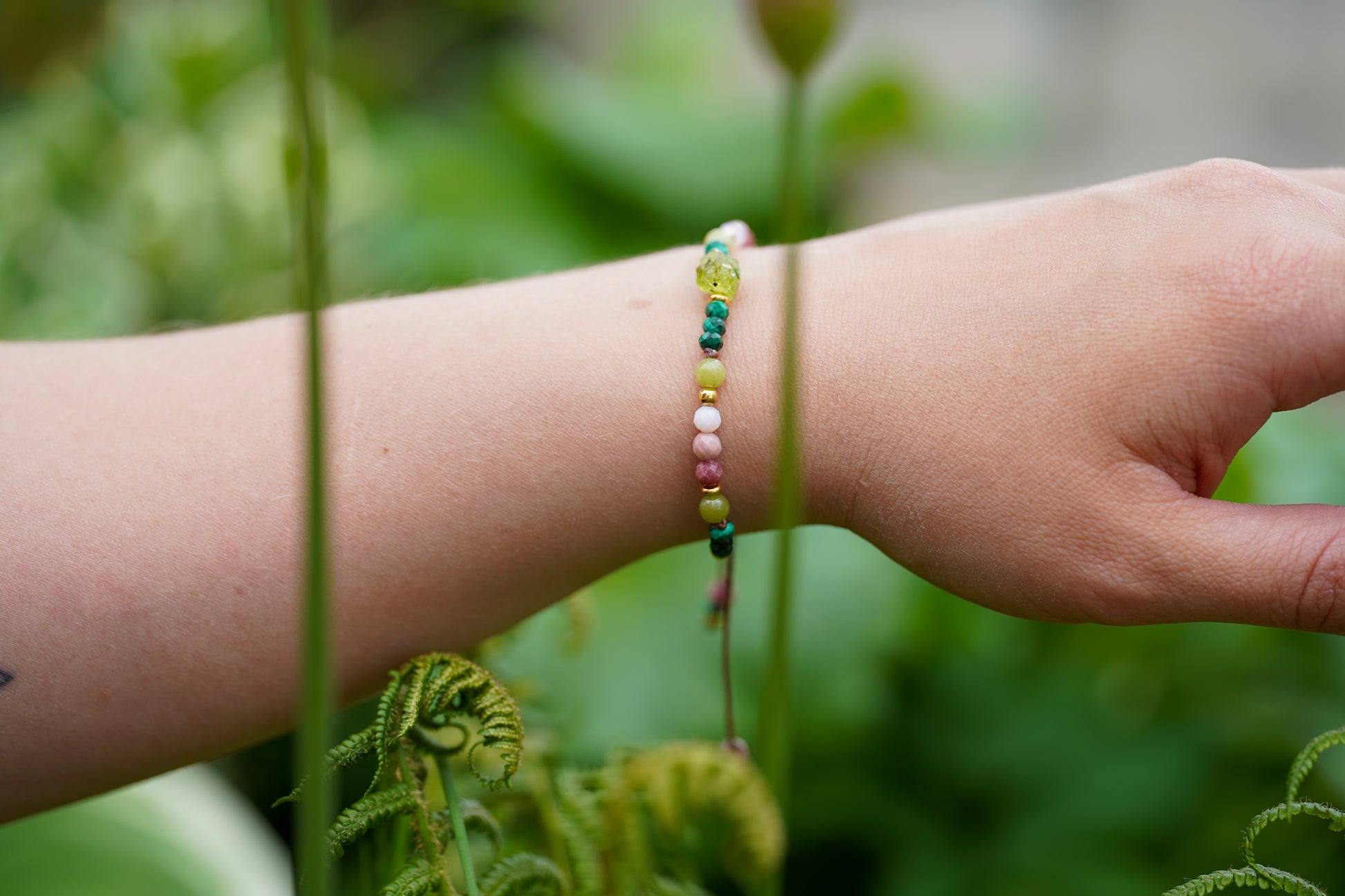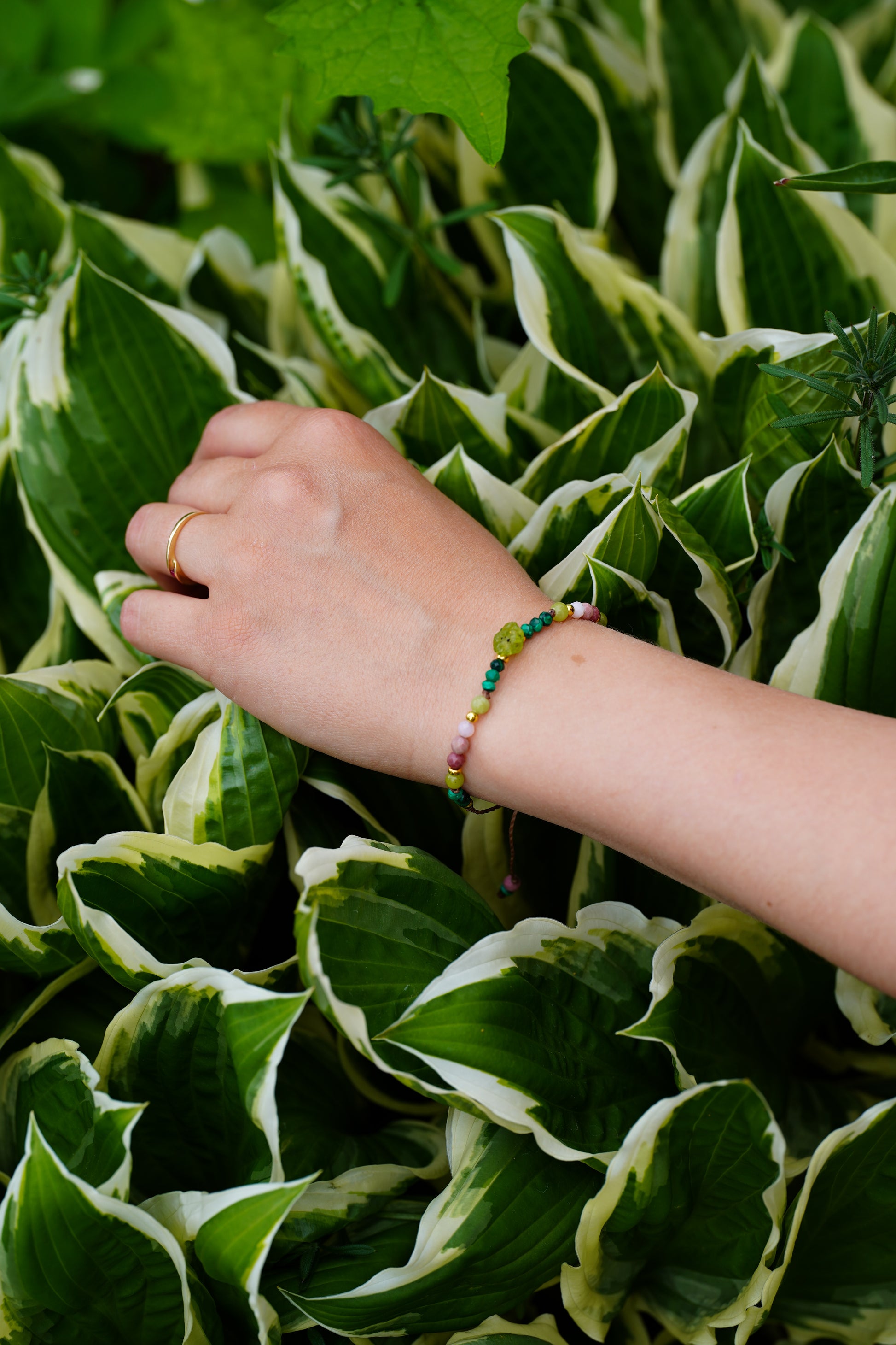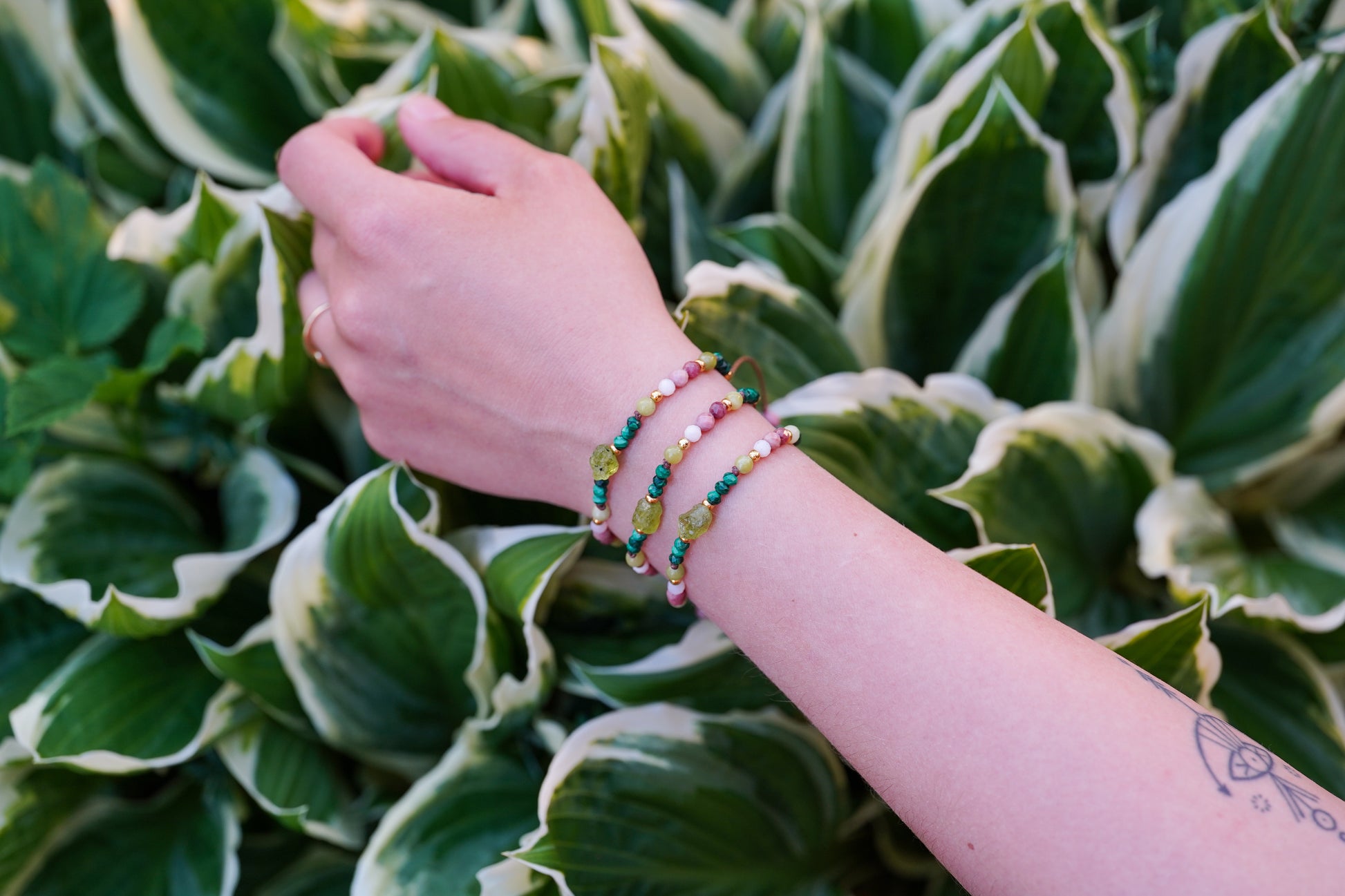 Perydot, Malachit, Jadeit, Opal różowy, Rodonit, Ag 925 pozłacane