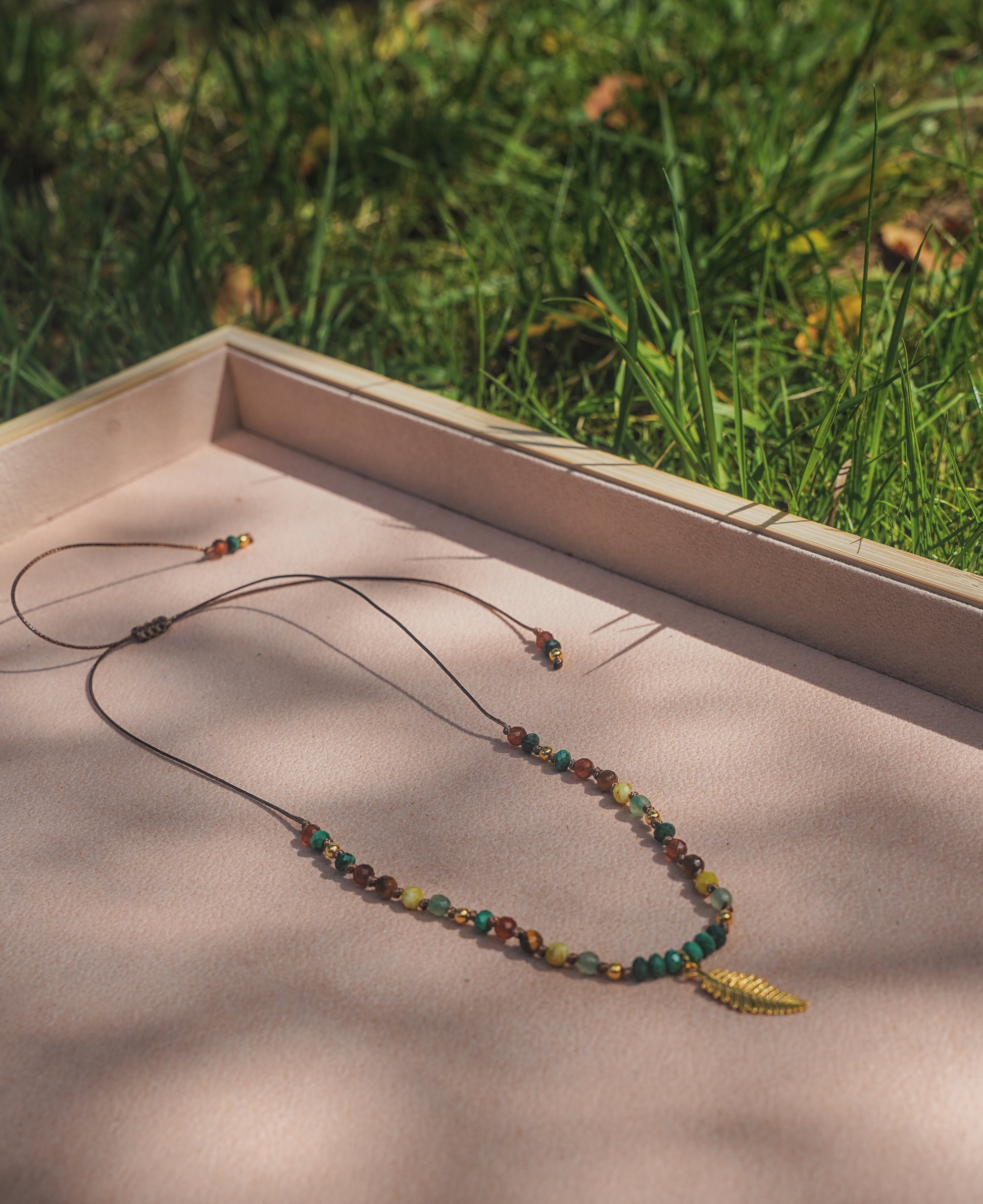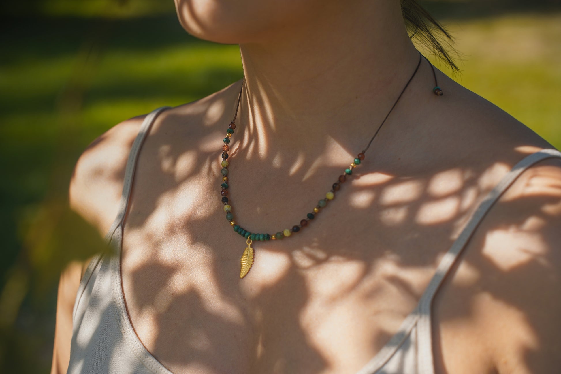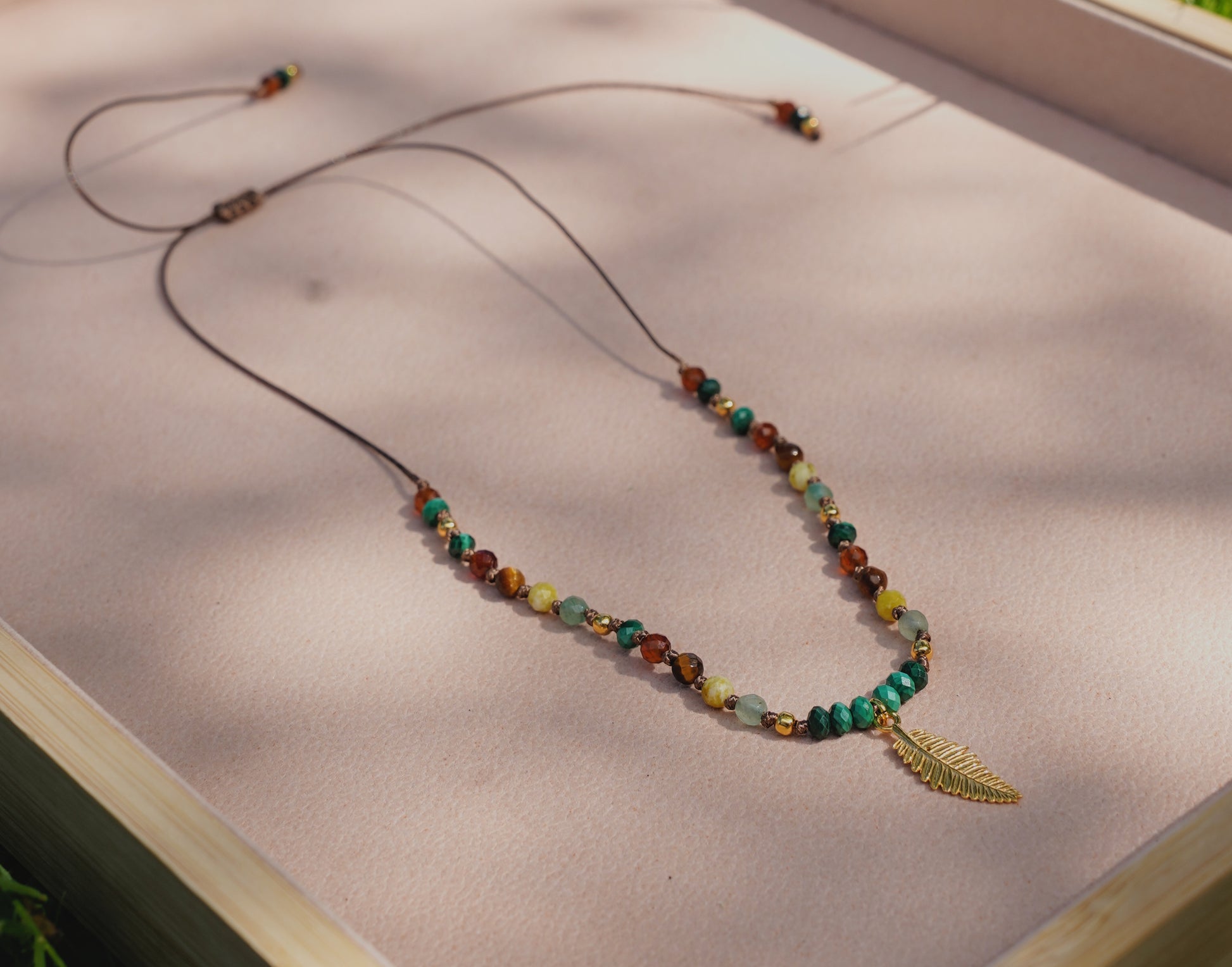 Naszyjnik Dobrobyt z zawieszką w kształcie liścia paproci, nawiązuje do harmonii z naturą, dobrobytu i wewnętrznej siły.
