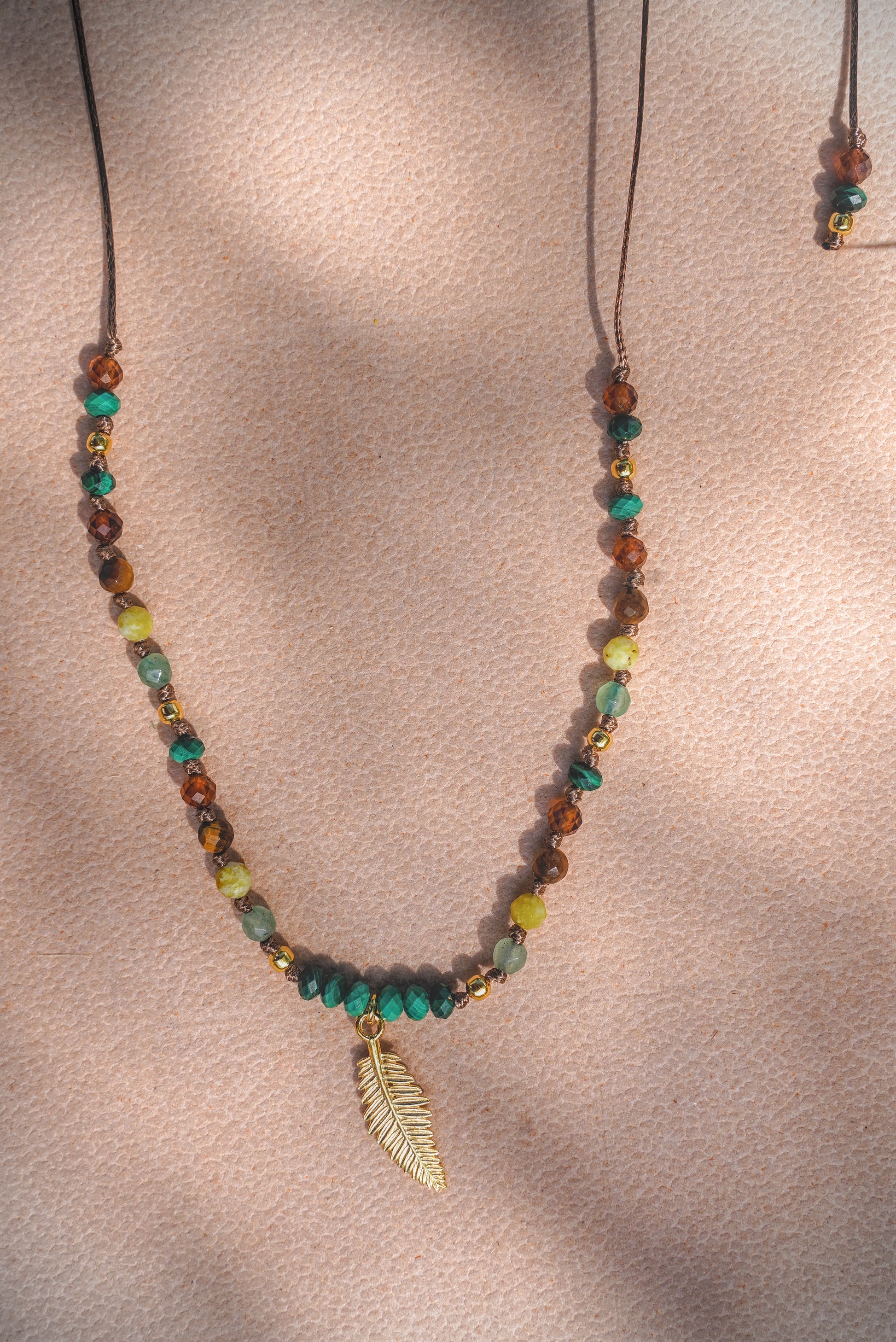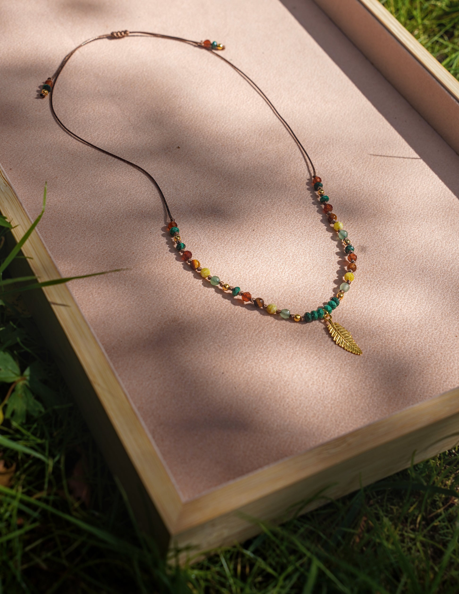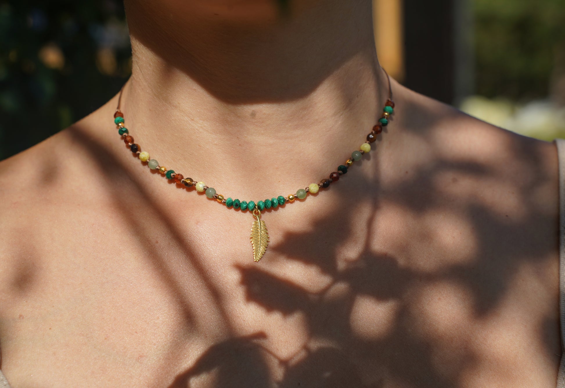 Naszyjnik Dobrobyt z zawieszką w kształcie liścia paproci, nawiązuje do harmonii z naturą, dobrobytu i wewnętrznej siły.